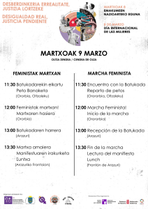 Martxoak 8 Emakumeen Nazioarteko Eguna. Berdintasun Zerbitzuaren eta Udalen kanpaina eta programazioa, eskualdeko emakume eta talde feministekin elkarlanean.