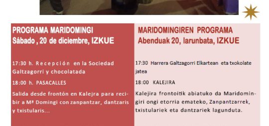 RECIBIMIENTO A MARIDOMINGI: Sábado , 20 de diciembre, en IZKUE